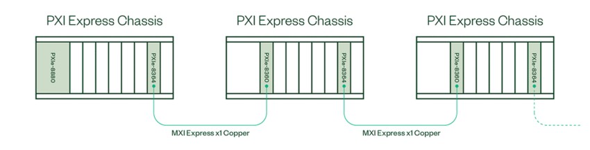 PXI 遠端控制模組透過 MXI-Express 技術,在桌上型 PC 等主機以及 PXI 機箱與儀器之間,提供簡單透明的連接方式。在開機期間,電腦會將 PXI 系統內的所有週邊模組識別為 PCI 機板,進而允許透過控制器與這些裝置進一步互動。若要以 PC 控制 PXI,則電腦需使用 PCI/PCI Express 機板,且必須將 PXI/PXI Express 模組插在 PXI 系統的插槽 1,並以銅線或光纖纜線連接。銅線的資料通量容量較高,但長度通常較短 (1 公尺至 10 公尺);而光纖連接線則提供長度更長的選項 (長達 100 公尺),但資料通量容量可能較低。大部分 PC 都可立即相容於 PXI 遠端控制解決方案。再者,由於採用 NI 的 MXI-Express Bios Compatibility Software,因此能夠與更多 MXI-Express 裝置相容。