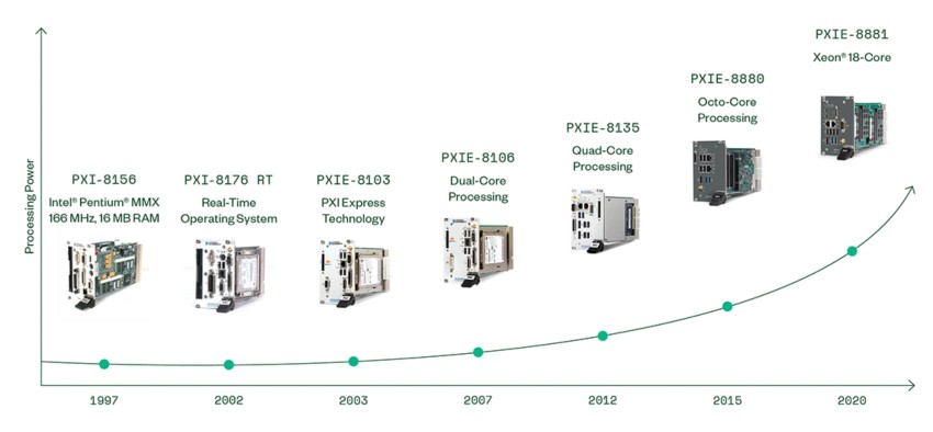 圖 8:過去 20 年來,NI 持續為 PXI 平台提供最新且最強大的處理技術。
